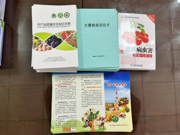 最后,为参会人员发放了《大樱桃栽培技术》、《樱桃病虫害诊断与防治》等技术手册。