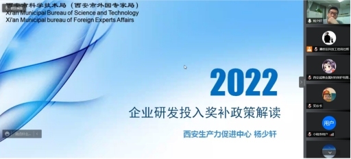 为了进一步促进辖区企业发展,提升企业自主创新意识和创新能力,不断强化企业创新主体地位,3月31日上午,灞桥区科技工信局联合西安生产力促进中心召开了企业研发投入奖补政策线上培训会,辖区内20余家企业参加了培训。