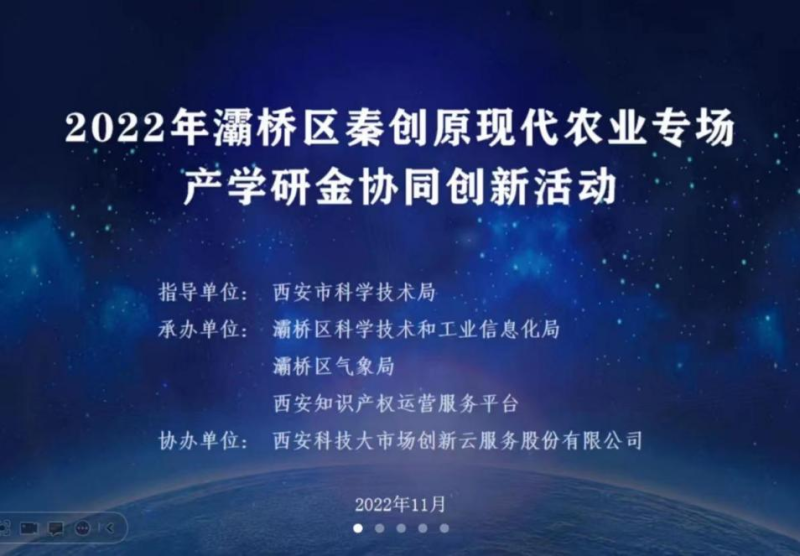 为深入推进灞桥区秦创原创新驱动平台建设,激发乡村振兴活力,加强灞桥区涉农企业与高校院所联系,加速最新农业科技成果在灞桥区的转化,11月30日,灞桥区科技工信局联合灞桥区气象局、科技大市场科创云服公司举办了灞桥区2022年现代农业专场产学研金协同创新线上活动。