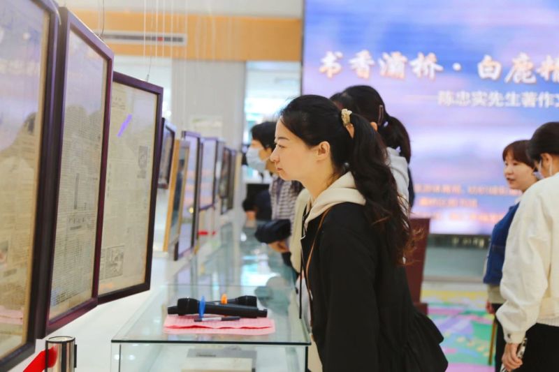 展厅之内,展示了资深收藏家胡青峰先生20余年收藏的珍贵资料。共精选了100余件不同历史时期的展品参展,分为图书著作、报刊杂志、题词墨迹、影视剧本等部分。巨幅海报之下,一幅幅手书墨迹、一版版泛黄报纸、一本本珍稀图书……重现了陈忠实先生的文学历程,让观众追寻时代的印记,沉浸在厚重精彩的文字中,徜徉在文学的殿堂里。以此来深刻铭记这位文学巨匠对中国文学的贡献,感受陈忠实先生的文学作品和奋斗精神对白鹿原和灞桥地区经济社会及文化事业发展的深刻影响。