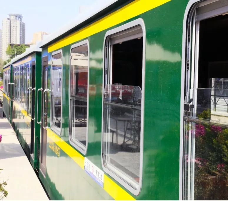 崭新的绿皮火车车厢