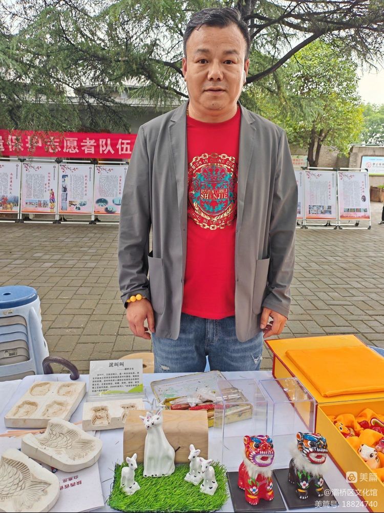狄寨徐文岳泥哨技艺传承人徐磊5月25日走进西安市临潼区鸿门宴博物馆参加文化馆服务宣传周活动。