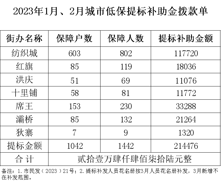 灞桥区2023年1月、2月城市低保提标补助金拨款单