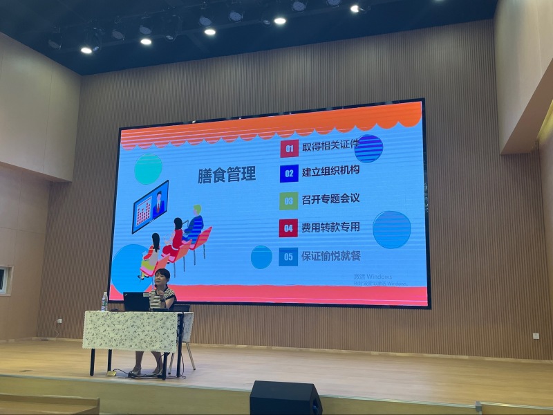 邀请西咸新区公共卫生管理中心托幼机构管理负责人李菊荣就托幼机构儿童膳食管理与营养分析进行了培训;培训主要从膳食卫生与安全、带量食谱的制定、膳食指南及膳食营养新标准、膳食调查与膳食分析、膳食调查评价分析报告等方面进行了详细的讲解。