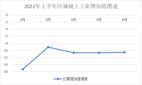 受需求收缩、供给冲击、预期转弱三重压力影响,我区工业经济持续下行,虽有部分行业产业链供应链逐步恢复,但下行压力依然较大。上半年,全区规上工业增加值同比下降7.7%,降幅较一季度扩大3.0个百分点,其中,区属规上工业增加值下降10.6%,降幅较一季度扩大1.5个百分点。