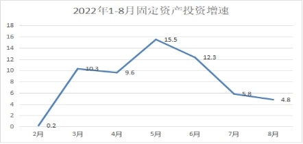 (一)投资保持增长。1-8月,区属固定资产投资总额增长4.8%,增速较上月回落1个百分点。