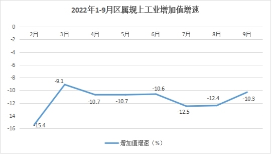 2022年1-9月,全区规上工业增加值增速-6.4%,降幅较上半年缩小1.3个百分点,其中,区属规上工业增加值增速-10.3%,降幅较上半年缩小0.3个百分点。