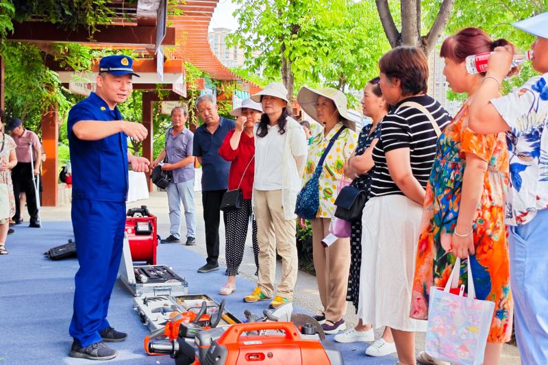 活动主舞台上,来自灞桥区城管局、交警大队、消防救援大队,以及红十字会的专业人员,通过详细的讲解给群众进行了燃气安全、交通安全、消防安全和家庭急救等应急安全知识科普,并通过实地操作,提示大家在使用救援设备时的注意事项。还邀请在场群众亲自上台操作,让大家切实体验了一堂特别的应急救援课。