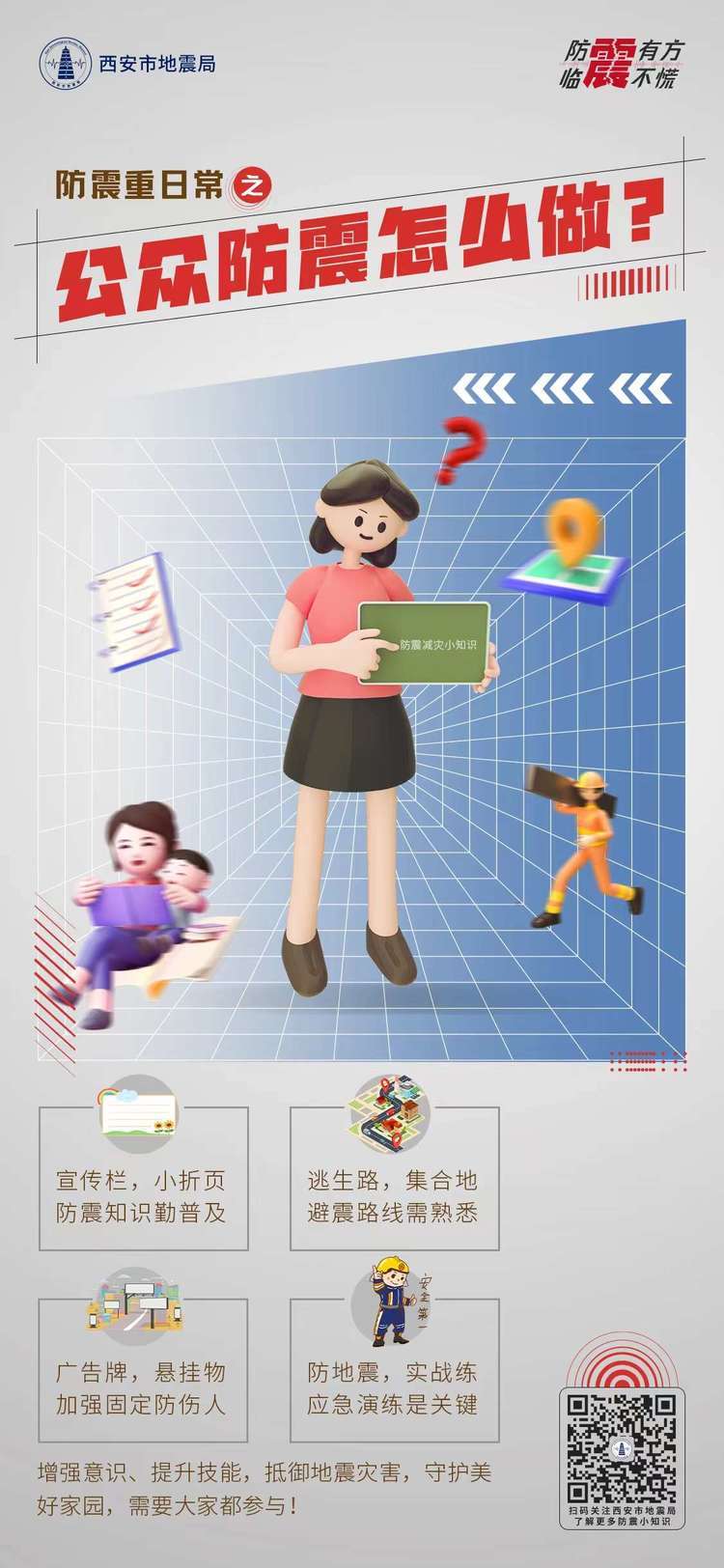 通过开展形式多样的防震减灾宣传活动,使广大市民进一步了解地震应急避险知识,掌握应对地震灾害发生时应采取的防护措施,增强公众科学防震意识,提高自我保护和应急避险能力,引导全社会主动、科学地参与防震减灾,为防震减灾工作创造出良好的社会氛围,为构筑全区和谐发展提供地震安全保障。