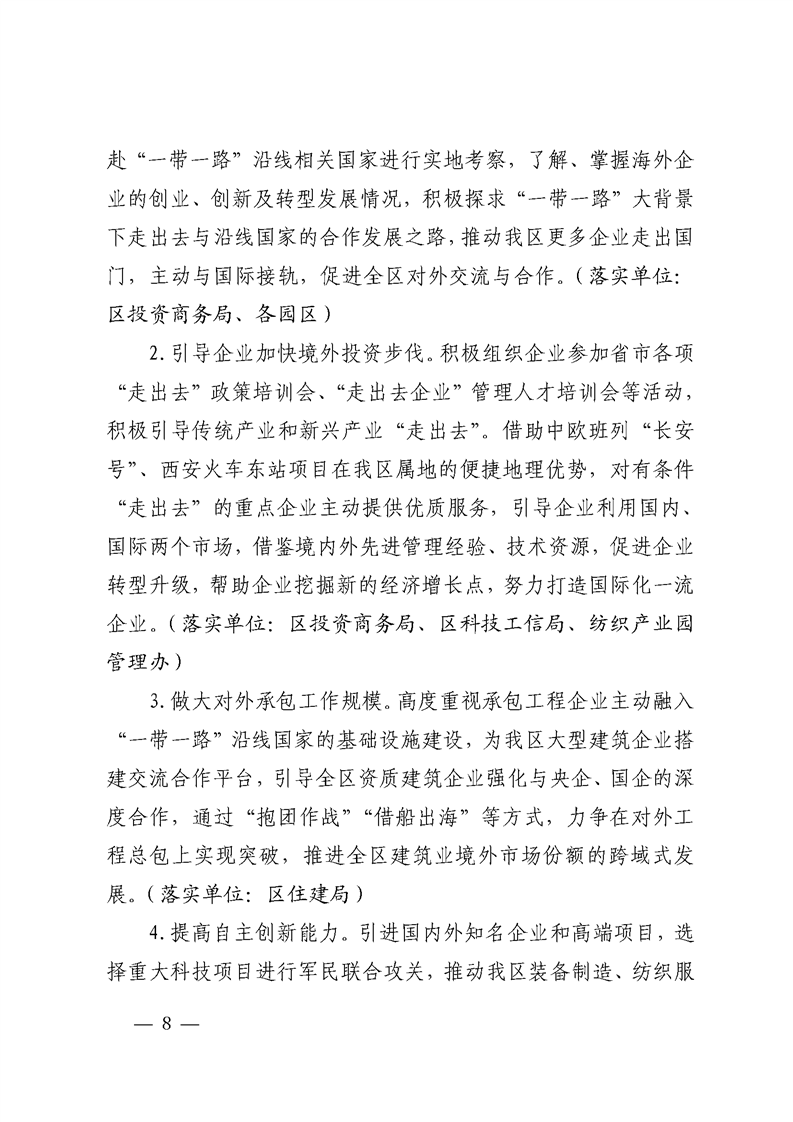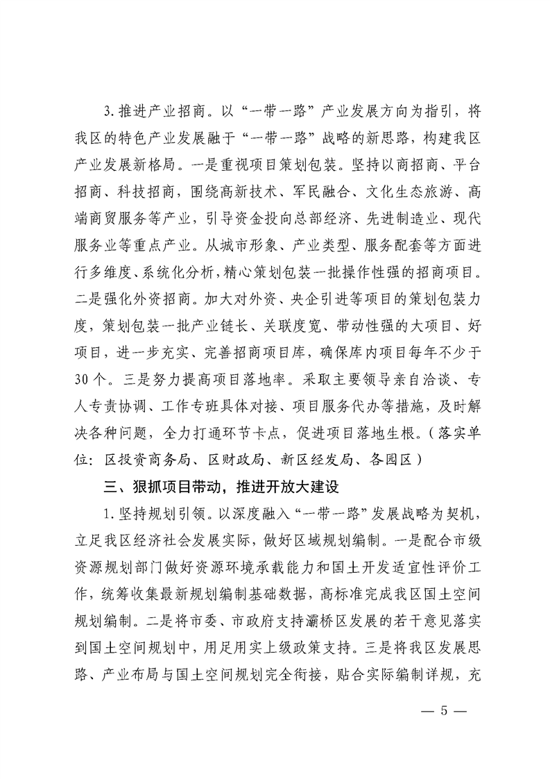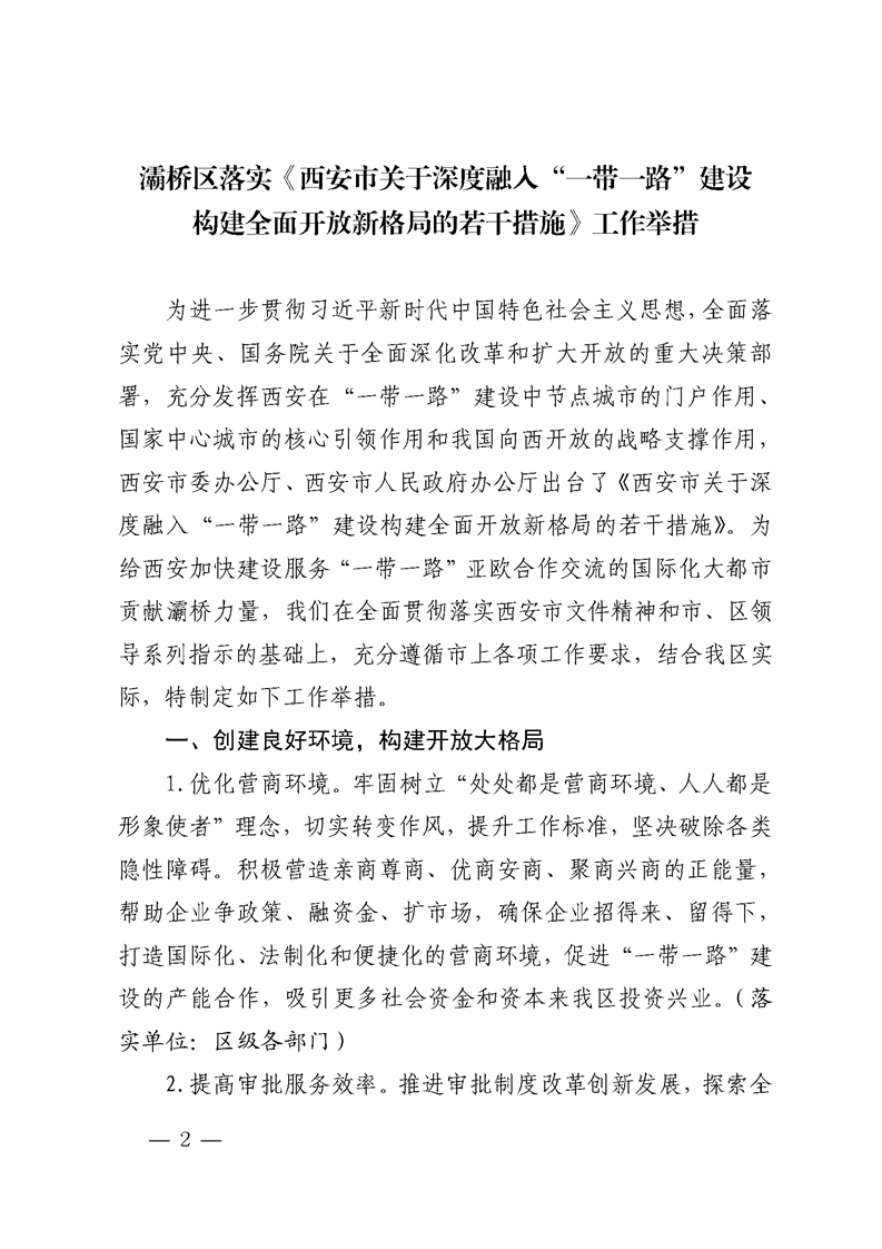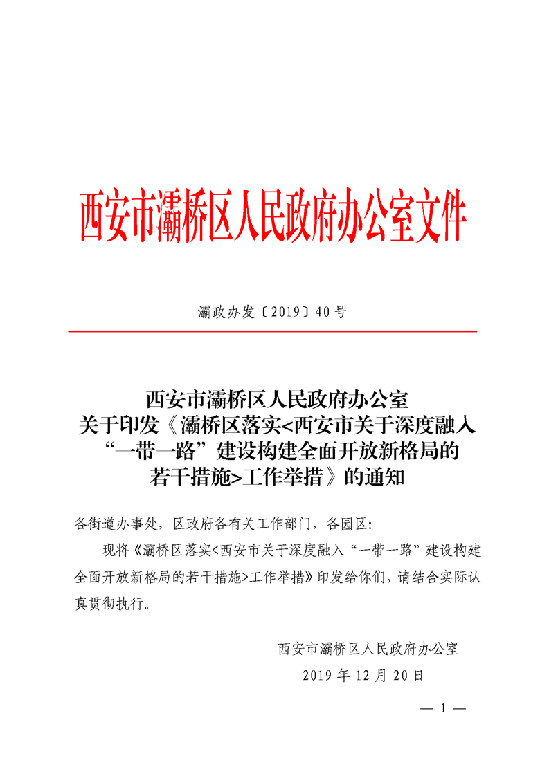 西安市灞桥区人民政府办公室关于印发《灞桥区落实<西安市关于深度融入“一带一路”建设构建全面开放新格局的若干措施>工作举措》的通知 灞政办发〔2019〕40号