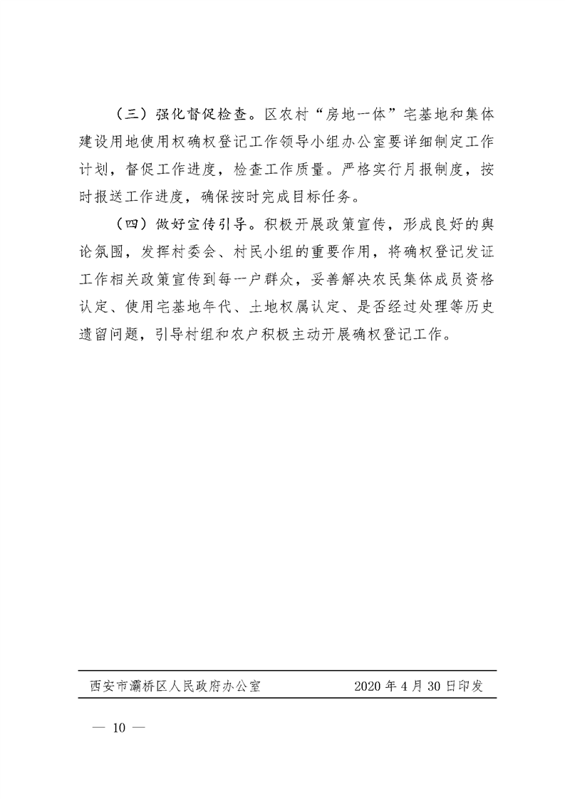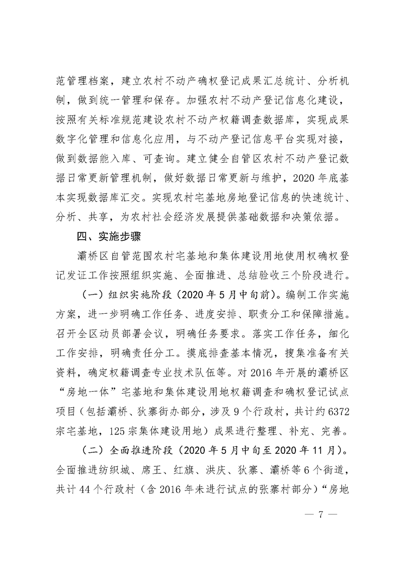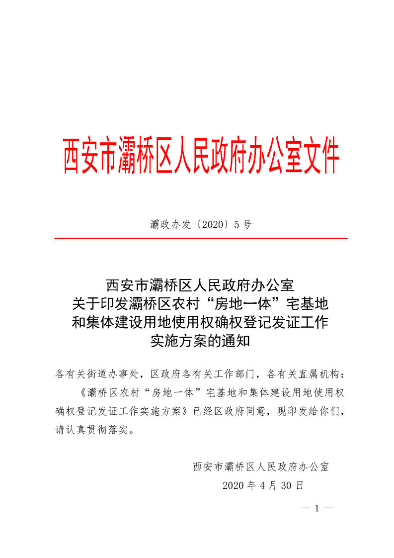西安市灞桥区人民政府办公室关于印发灞桥区农村“房地一体”宅基地和集体建设用地使用权确权登记发证工作实施方案的通知 灞政办发〔2020〕5号