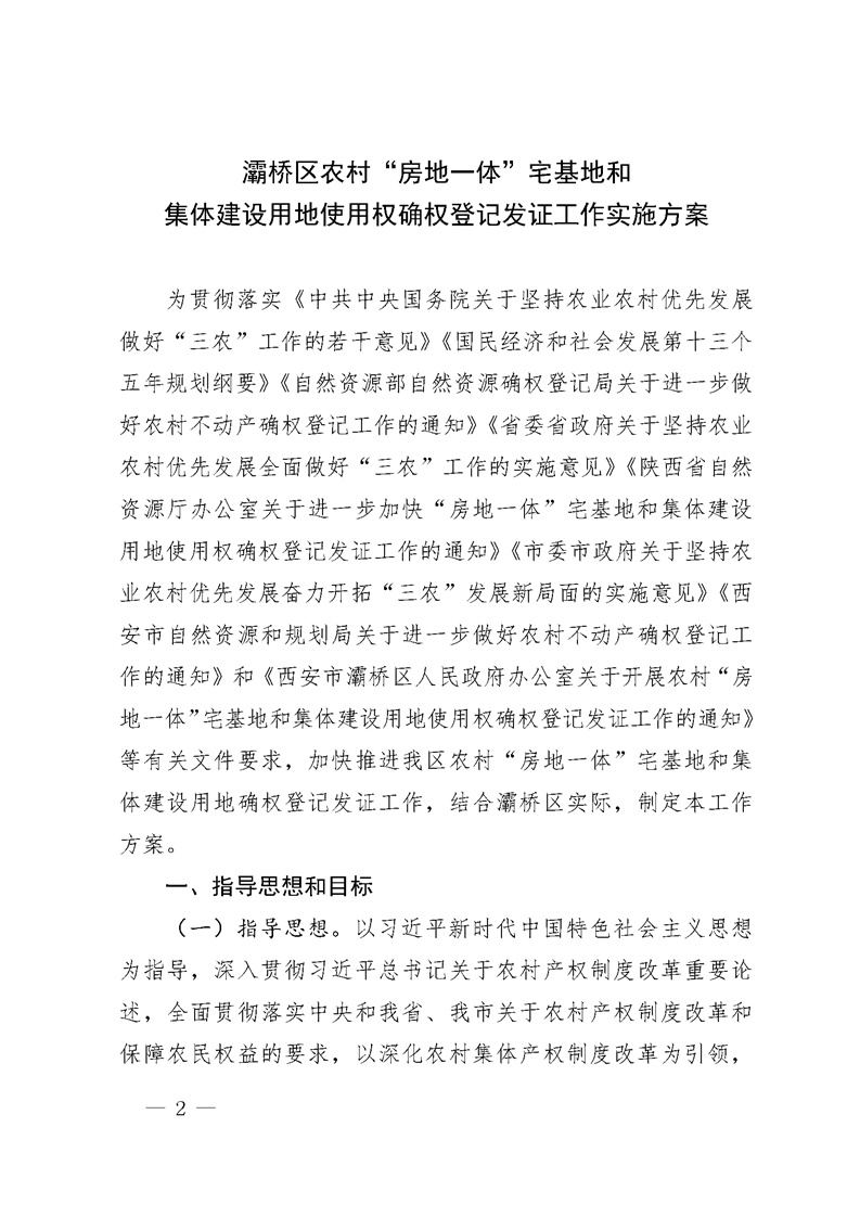 政策解读:西安市灞桥区人民政府办公室关于印发灞桥区农村“房地一体”宅基地和集体建设用地使用权确权登记发证工作实施方案的通知