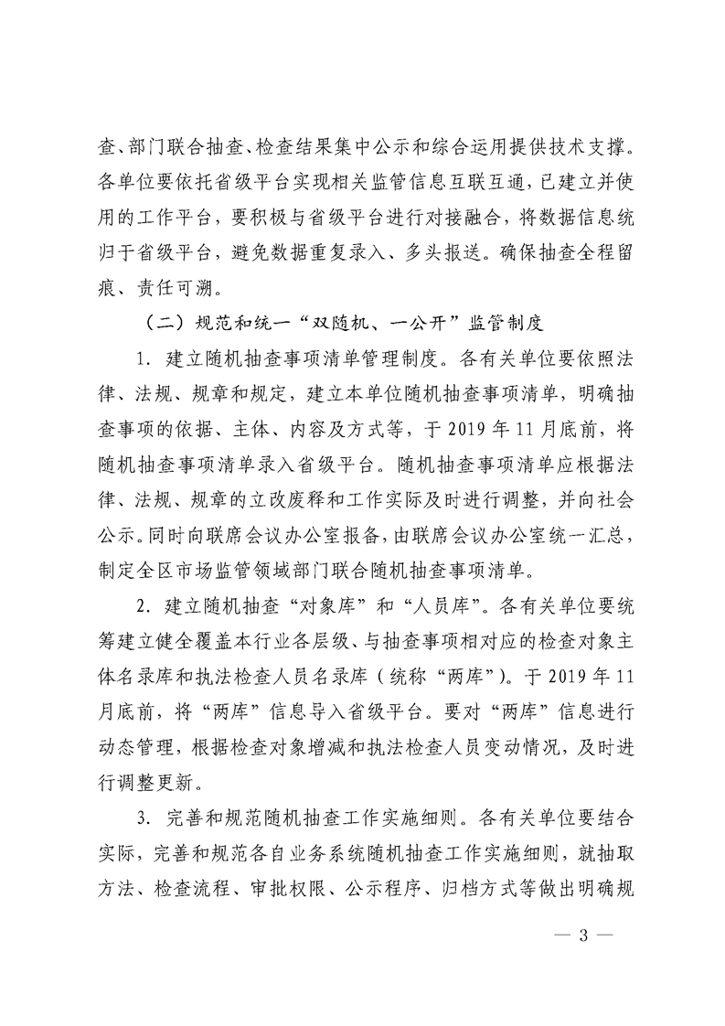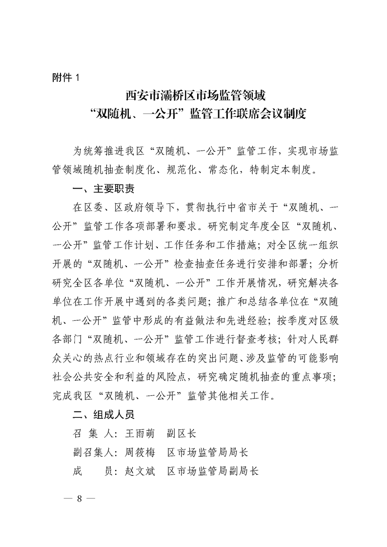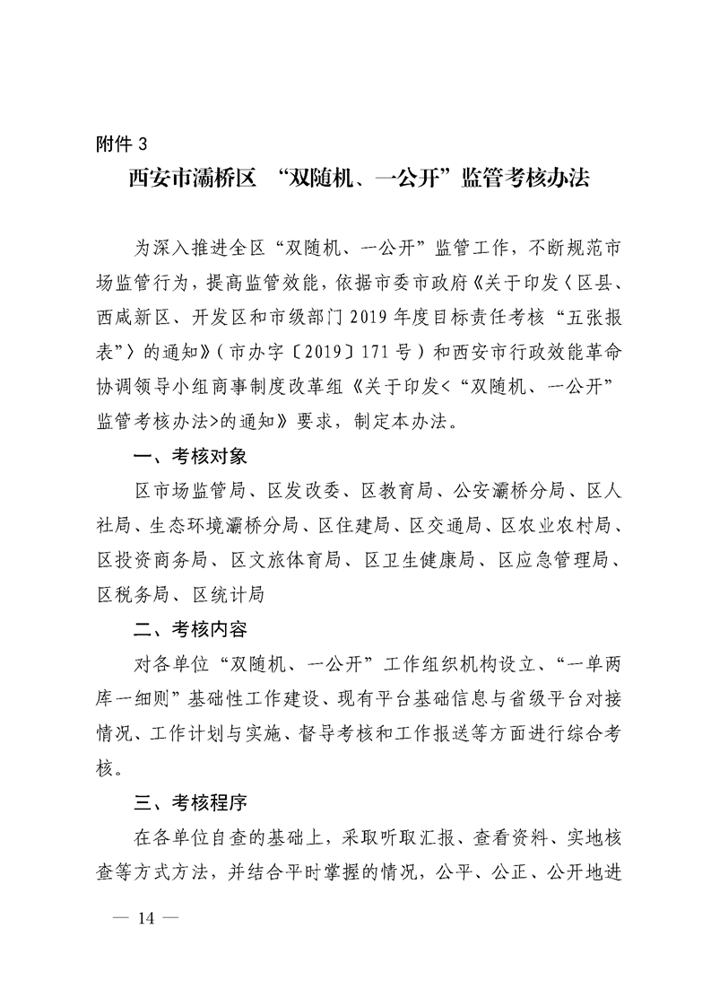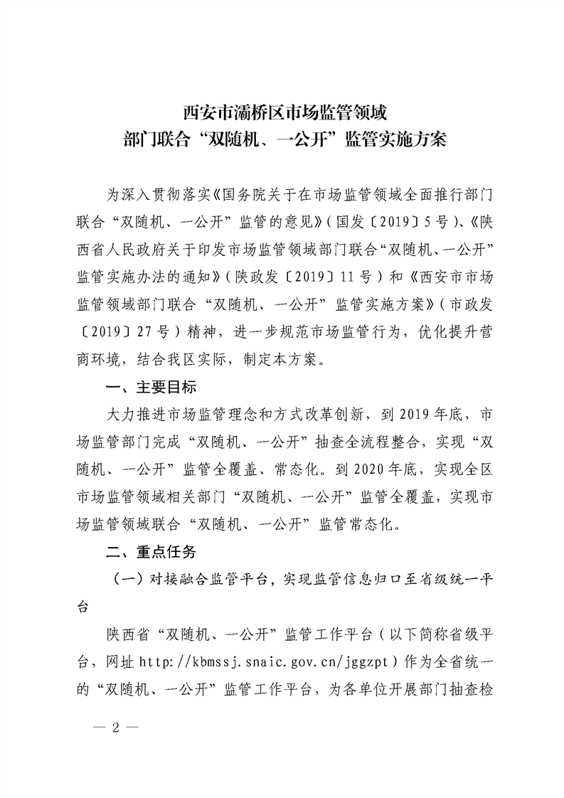 西安市灞桥区人民政府关于印发《市场监管领域部门联合“双随机、一公开”监管实施方案》的通知 灞政发〔2019〕25号