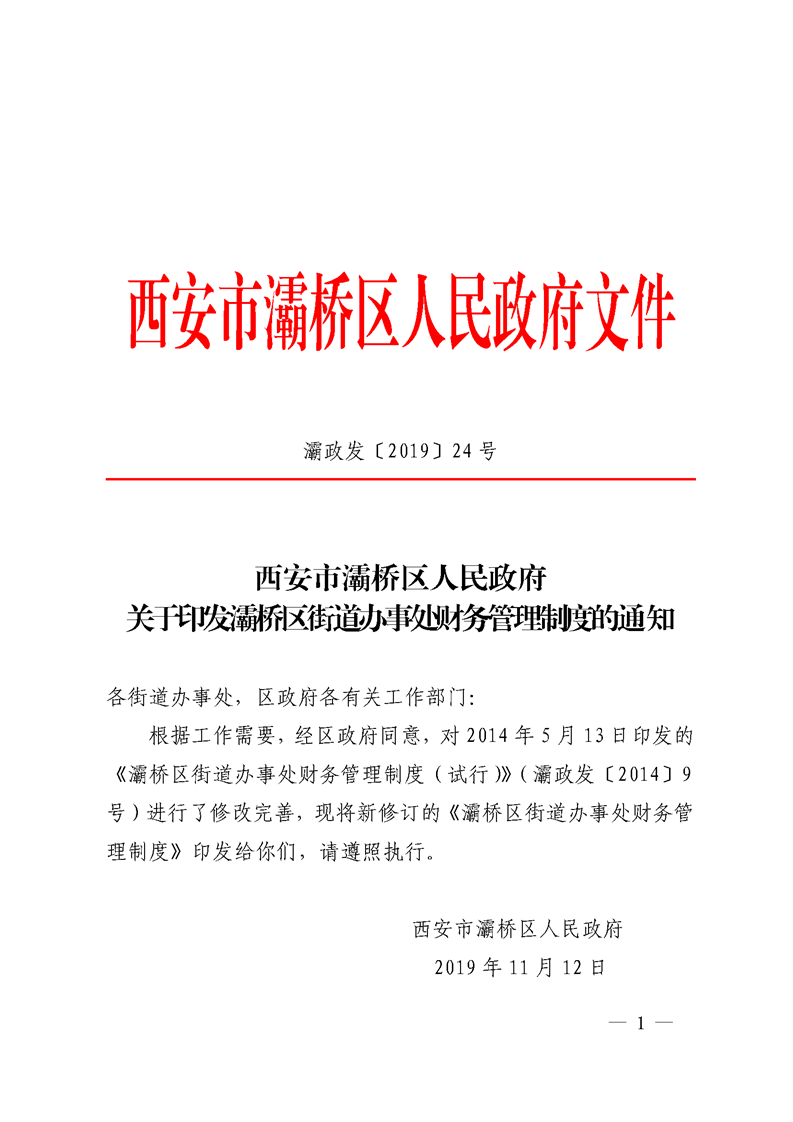 西安市灞桥区人民政府关于印发灞桥区街道办事处财务管理制度的通知 灞政发〔2019〕24号