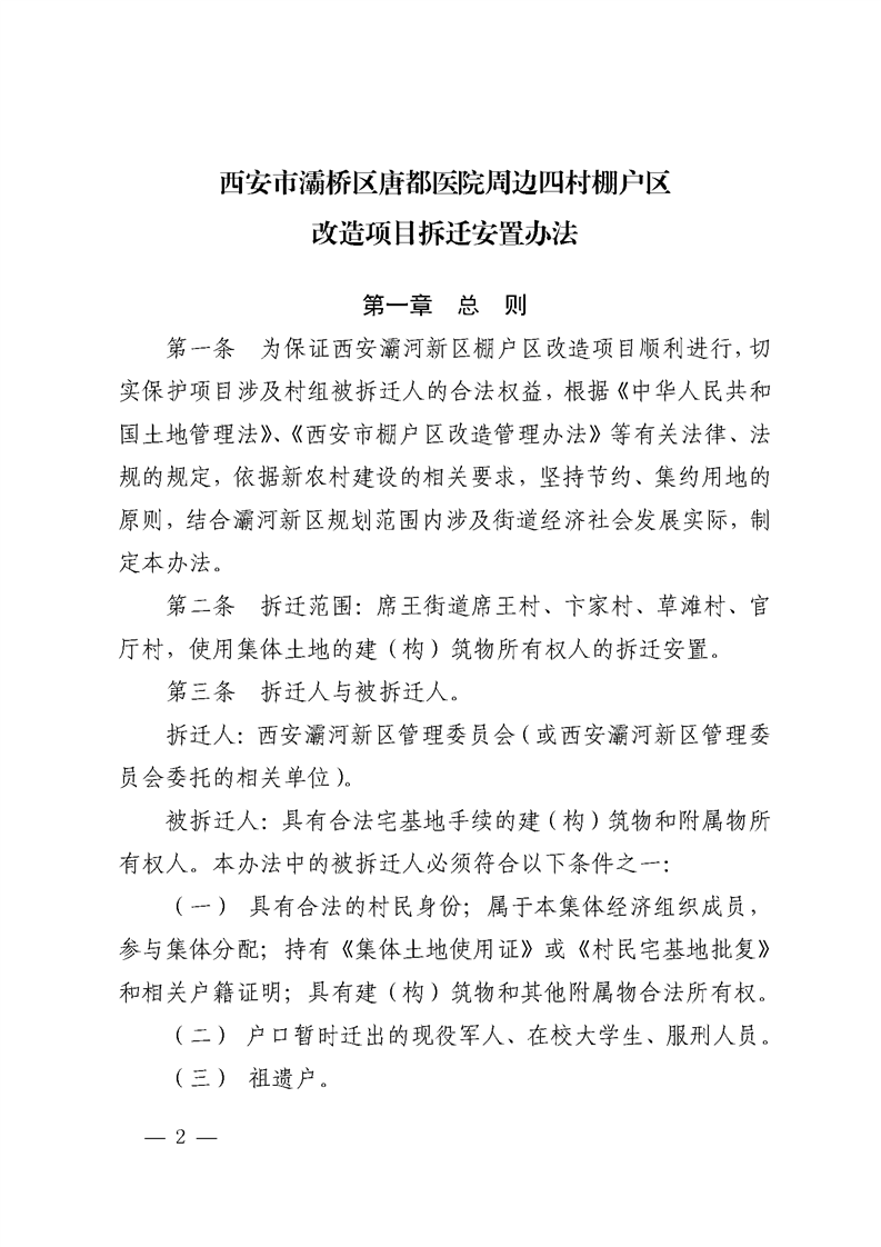 西安市灞桥区人民政府 西安灞河新区管理委员会关于印发西安市灞桥区唐都医院周边四村棚户区改造项目拆迁安置办法的通知 灞政发〔2019〕22号