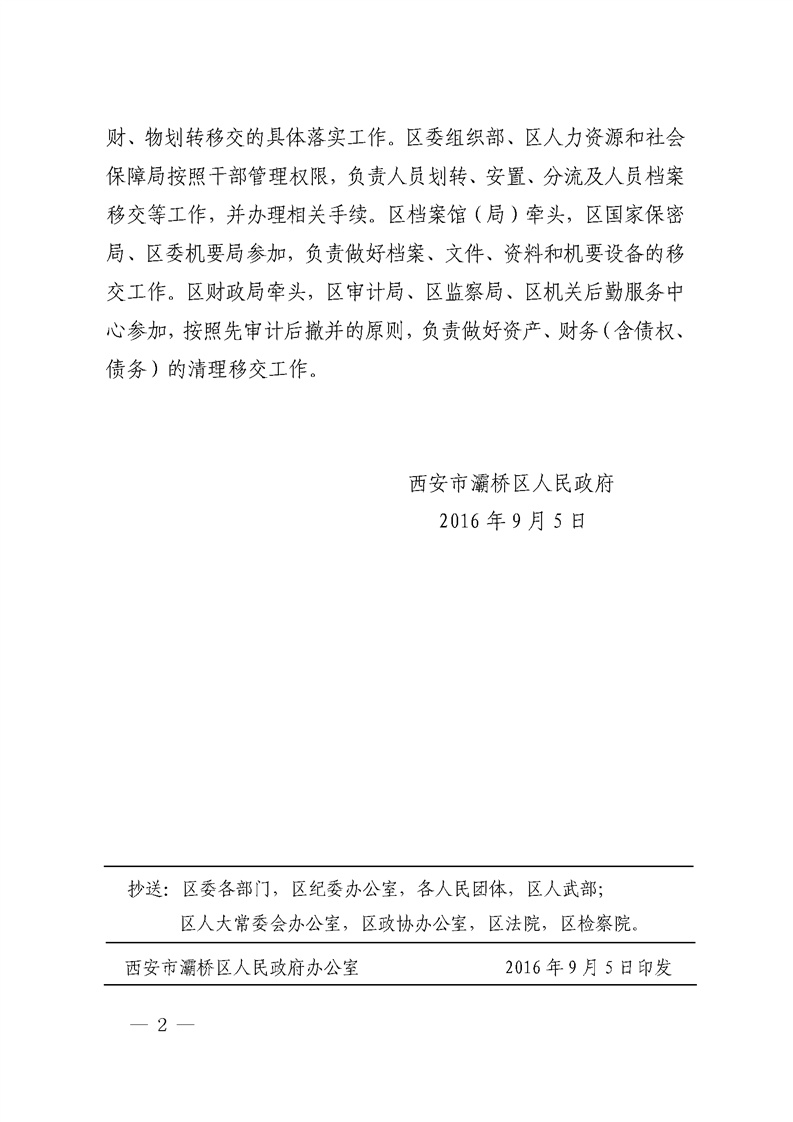 西安市灞桥区人民政府关于撤销区金融合作办公室等机构的通知 灞政发〔2016〕39号