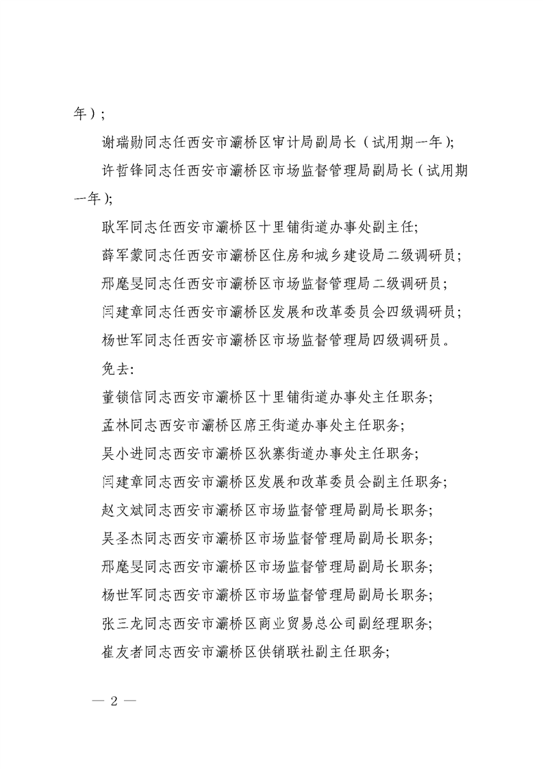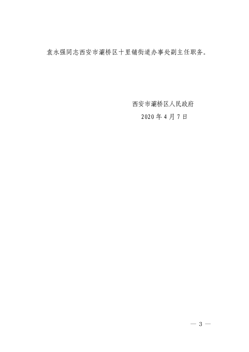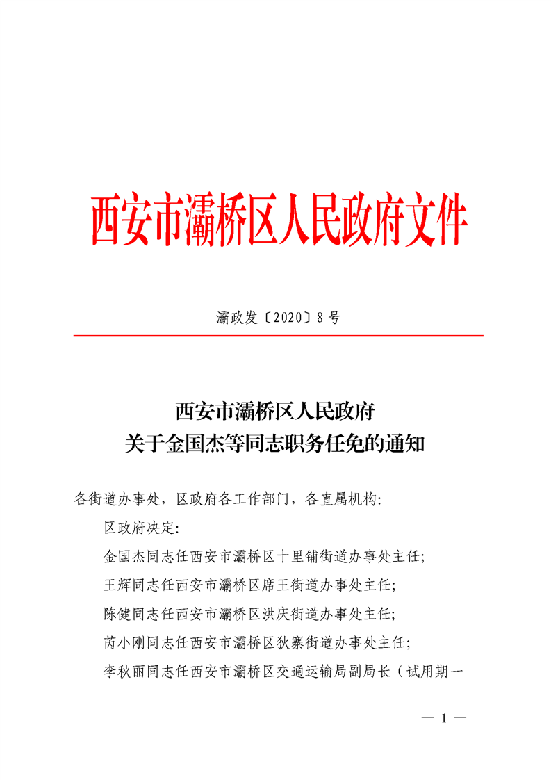 西安市灞桥区人民政府关于金国杰等同志职务任免的通知 灞政发〔2020〕8号