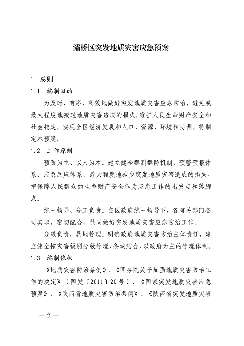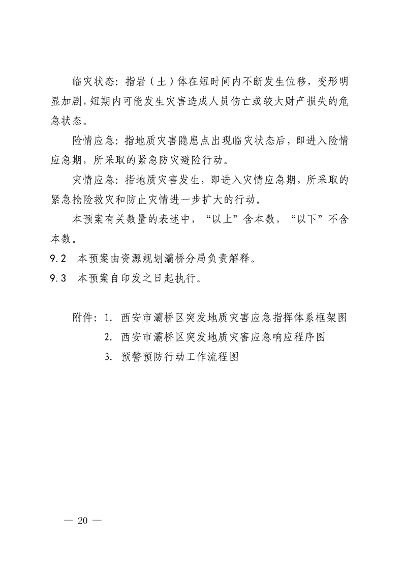 西安市灞桥区人民政府关于印发《灞桥区突发地质灾害应急预案》的通知 灞政发〔2020〕9号