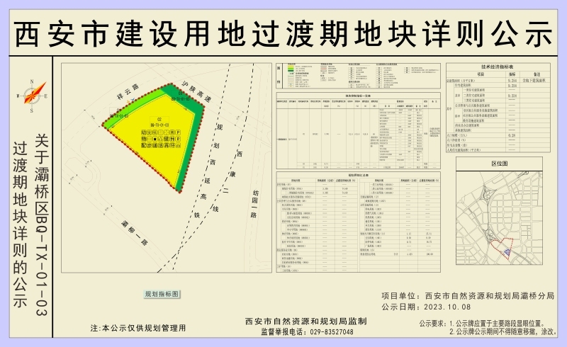BQ-TX-01-03地块位于西安市灞桥区TX-01单元内,西康铁路以西、祥云路以东、沪陕高速以南,规划净用地面积约4.425公顷(约66.375亩),BQ-TX-01-03-02宗地在上述地块范围内,规划净用地面积约3.305公顷(49.576亩)。具体规划指标如下: