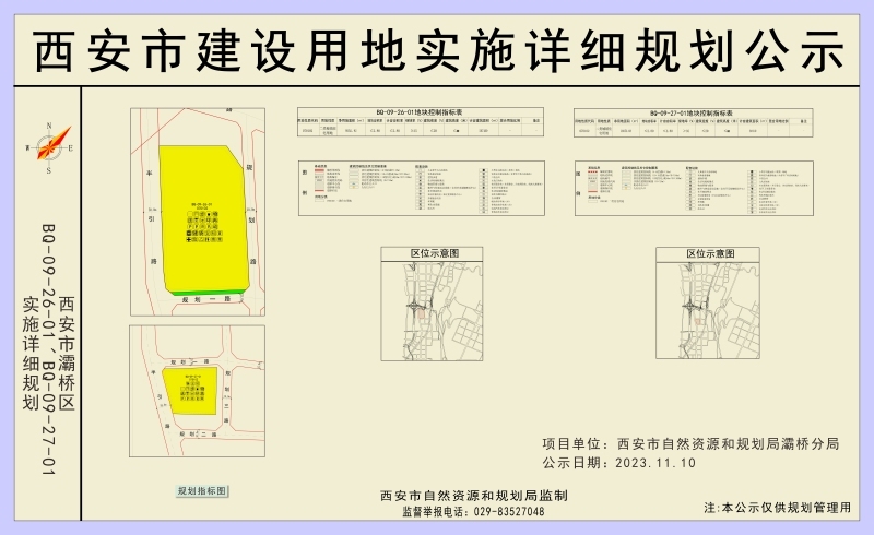BQ-09-26-01位于灞桥区半引路以东,规划三路以西、规划一路以北,中心大道以南。净用地面积约9.55公顷(最终面积以实测为准),规划用地性质为二类城镇住宅用地(070102),容积率≤2.80,建筑密度≤20.0%,绿地率≥35.0%,建筑高度≤80m;