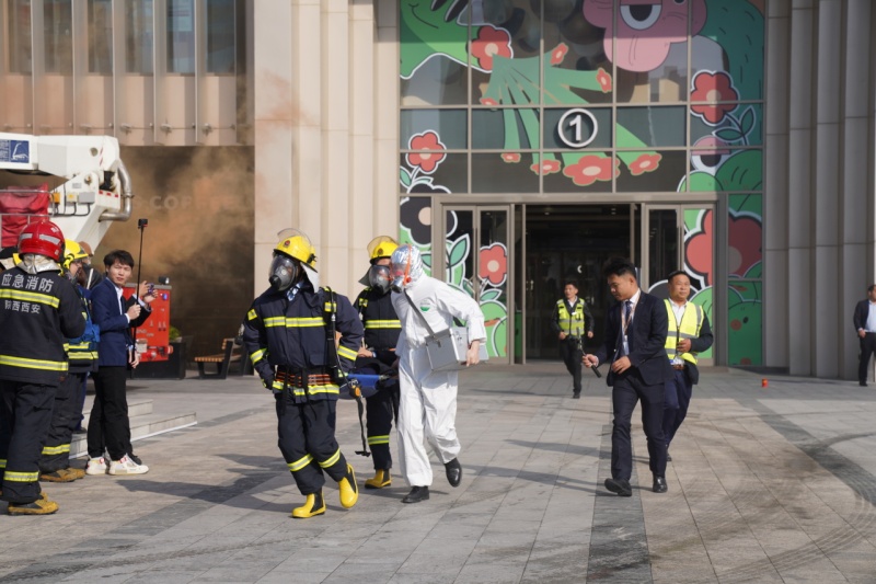 随后,在华阳城广场开展了大型综合体现场消防疏散实战演练,指战员利用排烟、举高平台、强臂破拆消防车等一批高精尖消防车辆装备器材,开展灭火救援行动,经过20多分钟的“奋战”,“火灾”被成功扑灭,所有被困人员全部被疏散并安全转移,演练取得了预期效果。