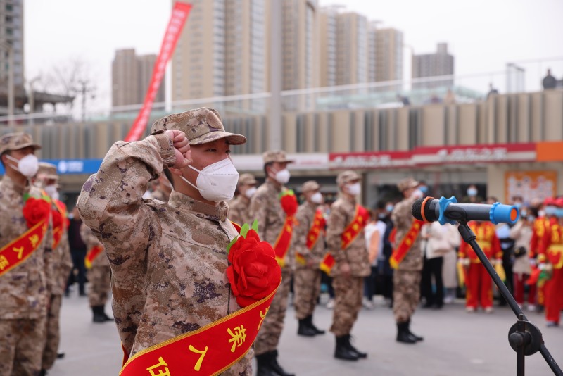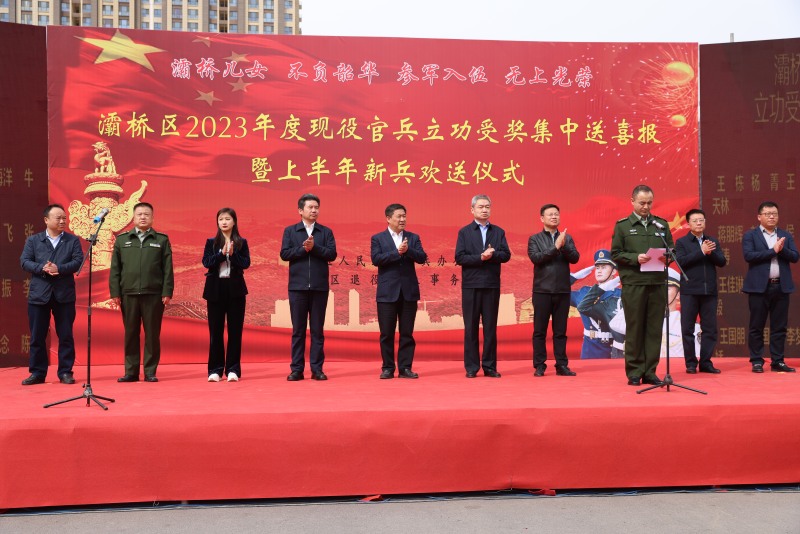 3月15日,灞桥区举行2023年度现役官兵立功受奖集中送喜报暨上半年新兵欢送仪式,现场颁发喜报和奖励金,同时为即将出征的新兵送上全区群众的美好祝愿,营造全社会关心国防、尊崇军人的浓厚氛围。