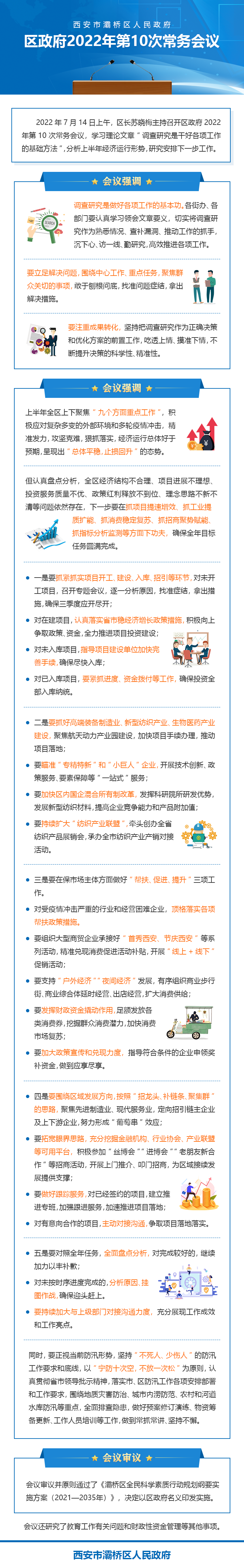 2022年7月14日上午,区长苏晓梅主持召开区政府2022年第10次常务会议,学习理论文章“调查研究是干好各项工作的基础方法”,分析上半年经济运行形势,研究安排下一步工作。