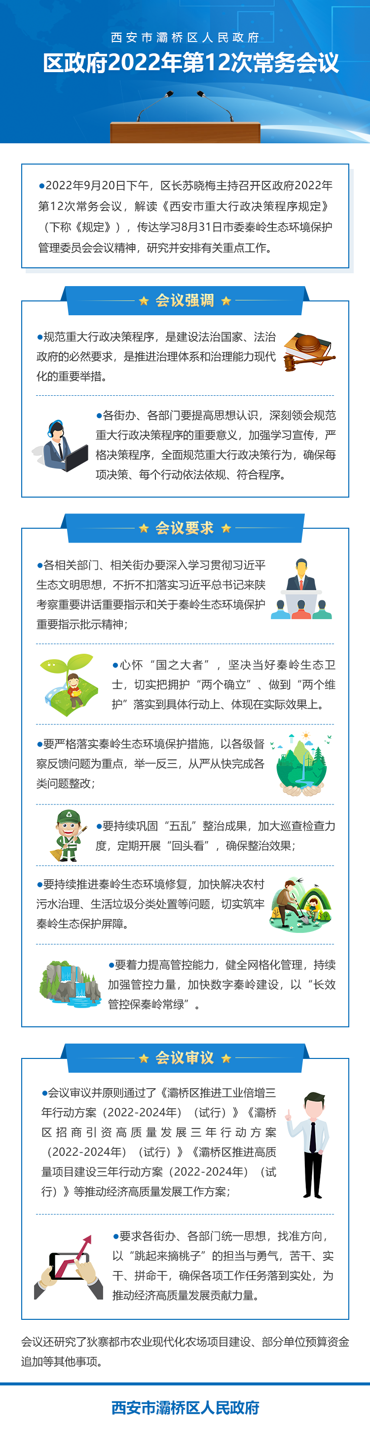 2022年9月20日下午,区长苏晓梅主持召开区政府2022年第12次常务会议,解读《西安市重大行政决策程序规定》(下称《规定》),传达学习8月31日市委秦岭生态环境保护管理委员会会议精神,研究并安排有关重点工作。